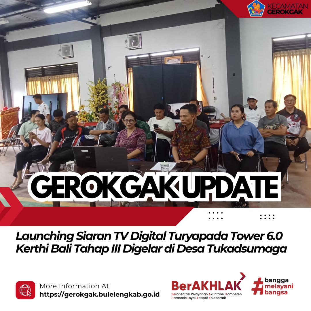 Tukadsumaga, Sabtu (27/12/2025) — Bertempat di Aula Kantor Desa Tukadsumaga, telah dilaksanakan kegiatan launching Siaran TV Digital dari Turyapada Tower 6.0 Kerthi Bali Tahap III. Kegiatan ini secara resmi dilaunching oleh Gubernur Bali dan diikuti secara daring melalui Zoom oleh Camat Gerokgak, I Gd Arya Rimbawa Giri, S.IP., M.AP.