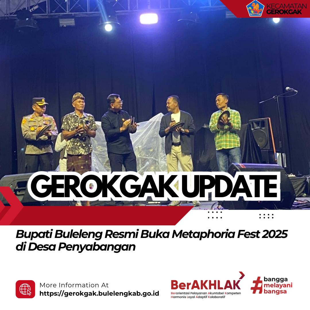 Metaphoria Fest 2025 resmi dibuka dengan ditandai pembunyian cengceng, salah satu alat musik tradisional Bali, oleh Bupati Buleleng, dan didampingi oleh Ketua DPRD Buleleng, Camat Gerokgak, Kapolsek Gerokgak, Perbekel Desa Penyabangan, serta para panitia.