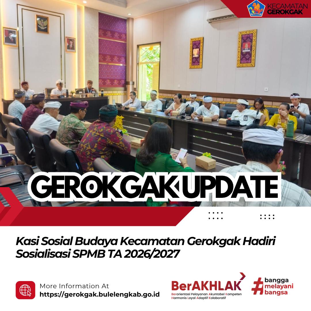 Buleleng, Kamis 16 April 2026 — Kepala Seksi Sosial dan Budaya Kecamatan Gerokgak menghadiri kegiatan Sosialisasi Sistem Penerimaan Murid Baru (SPMB) serta Penandatanganan Komitmen Dukungan Pelaksanaan SPMB Tahun Ajaran 2026/2027 di Ruang Rapat Bappeda Buleleng.