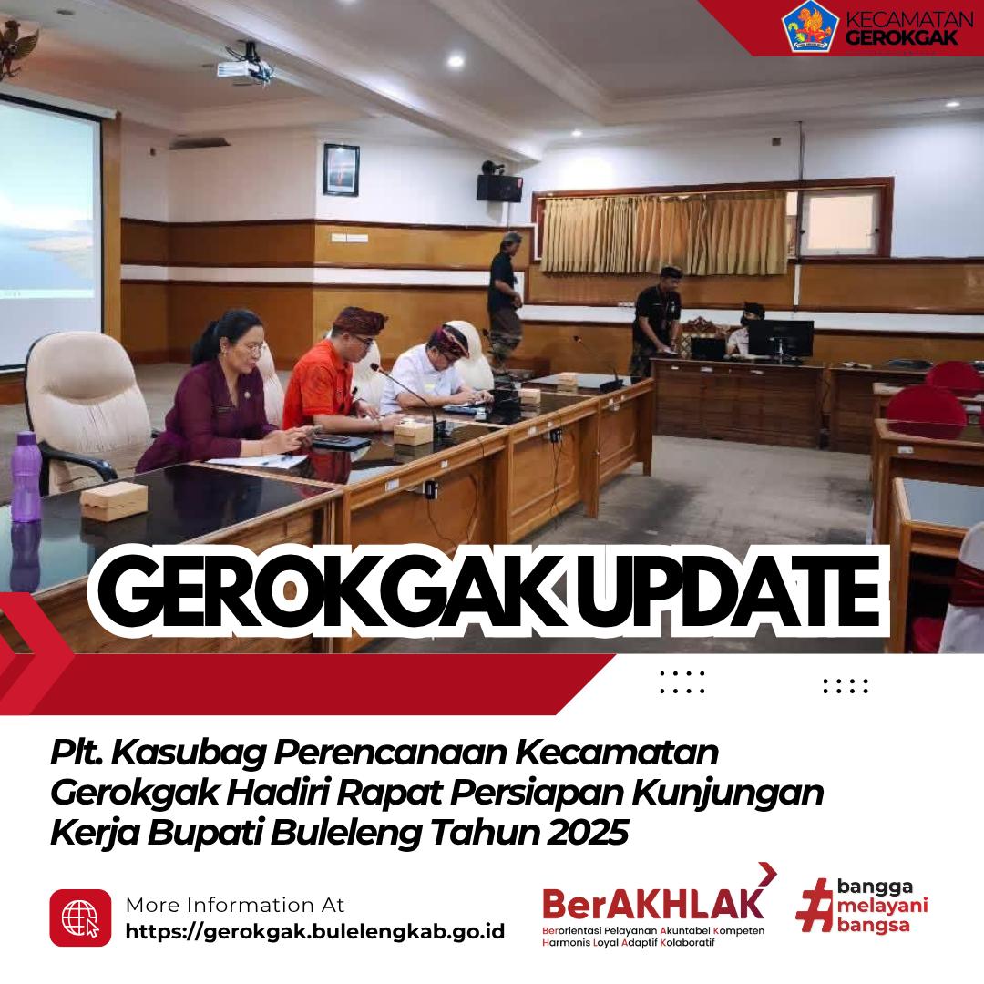 Singaraja, 30 Oktober 2025 — Plt. Kasubag Perencanaan Kecamatan Gerokgak Ketut Krisna Prasetya, S.Tr.IP. menghadiri rapat koordinasi persiapan Kunjungan Kerja (Kunker) Bupati Buleleng Tahun 2025, yang bertempat di Ruang Rapat Unit IV Kantor Bupati Buleleng, pada Kamis (30/10).