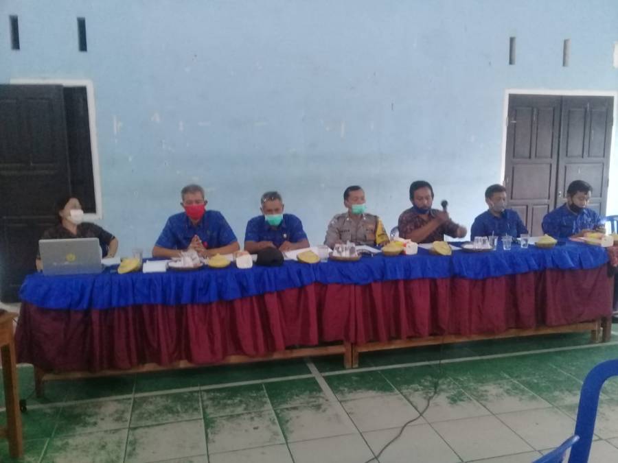 Kepala Seksi Pemerintahan Kecamatan Gerokgak I Putu Partha didampingi Perbekel Penyabangan Nyoman Sudiarta dalam kegiatan musyawarah desa (musdes) khusus tentang penetapan Keluarga Penerima Manfaat (KPM) dan prioritas penggunaan dana desa tahun 2021 yang berlangsung di GOR Desa Penyabangan, Selasa (1/12/2020).